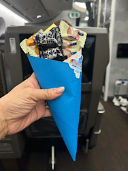 さてさて、昨日の娘の誕生日、私は沖縄ロケでした❗️ ギリギリ日付けが変わる0時までに行けそうと東京に行こうと空港に向かったら… 機材の都合でその時間に乗れないとわかり、最終の飛行機に乗りました✈️ 東京23時35分着。 どんなにスムーズにタクシー乗れても間に合わない… 「そんなに急に乗れないですか…誕生日中に会いたかったぁ。機材の都合、残念過ぎるけど仕方ないねぇ😢」 と、言いながら1時間半ほど待って飛行機に乗ろうとするとさっきのお姉さんが飴ちゃんで作った花束を 「誕生日の方にあげてください😊」 と。 悲しい気持ちが吹っ飛びました☺️ 娘も喜んでくれました💕 詳しくは、後日YouTubeで‼️